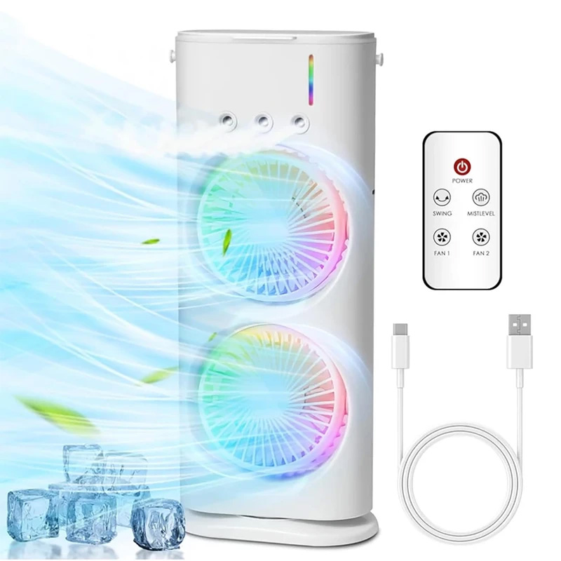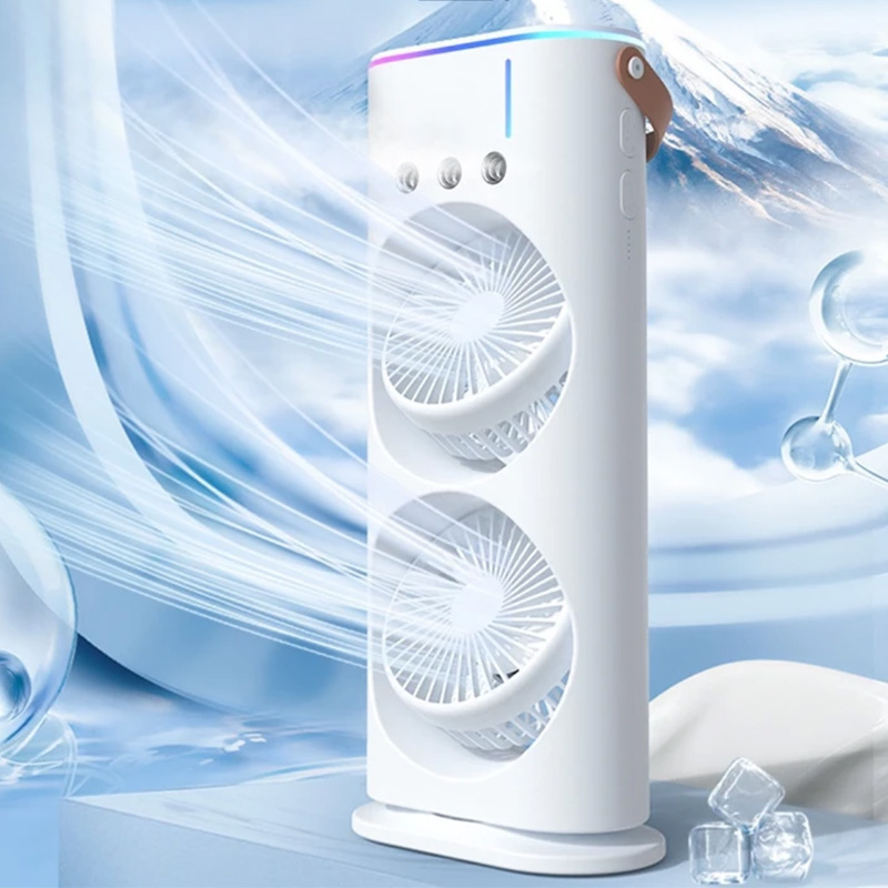 پنکه رومیزی دوقلو مه پاش مدل double ended spray fan خنک کننده ای هوشمند برای روزهای داغ تابستان که میتونه برای برای خانه، میزکار و سفر یا حتی کمپینگ انتخابی عالی باشد.