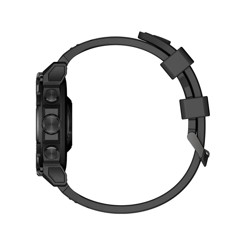 ساعت هوشمند هیمی مدل Pi Shock دارای صفحه نمایش 1.43 اینچ AMOLED لمسی و رنگی با وضوح تصویر 466×466 پیکسل هست که زاویه دید فوق العاده ای را به شما ارائه میدهد. فرم صفحه ساعت گرد هست و جنس آن آلیاژ روی + ABS است. در اندازه 14.15 × 56.70 × 53 میلی متر و وزن 84 گرم ساخته شده و به بازار ارائه شده است. رنگ ساعت مشکی مطابق تصویر و همراه با یک عدد بند سیلیکونی 22 میلی متر مشکی هست که میتوانید بند را از قسمت پشتی ساعت جدا کرده و تعویض کنید. در سمت راست بدنه ساعت 3 عدد دکمه قرار گرفته است. دکمه وسط همان دکمه پاور است که با فشار طولانی برای روشن و خاموش کردن ساعت و با چرخش برای تغییر مستقیم صفحات از آن استفاده میکنیم. دکمه ی بالای پاور دکمه عملکرد هست که با فشار کوتاه برای ورود به لیست عملکرد از آن استفاده شده و دکمه زیر پاور همان دکمه حرکتی هست و با فشار کوتاه ورود به لیست حرکتی در اختیار شماست.