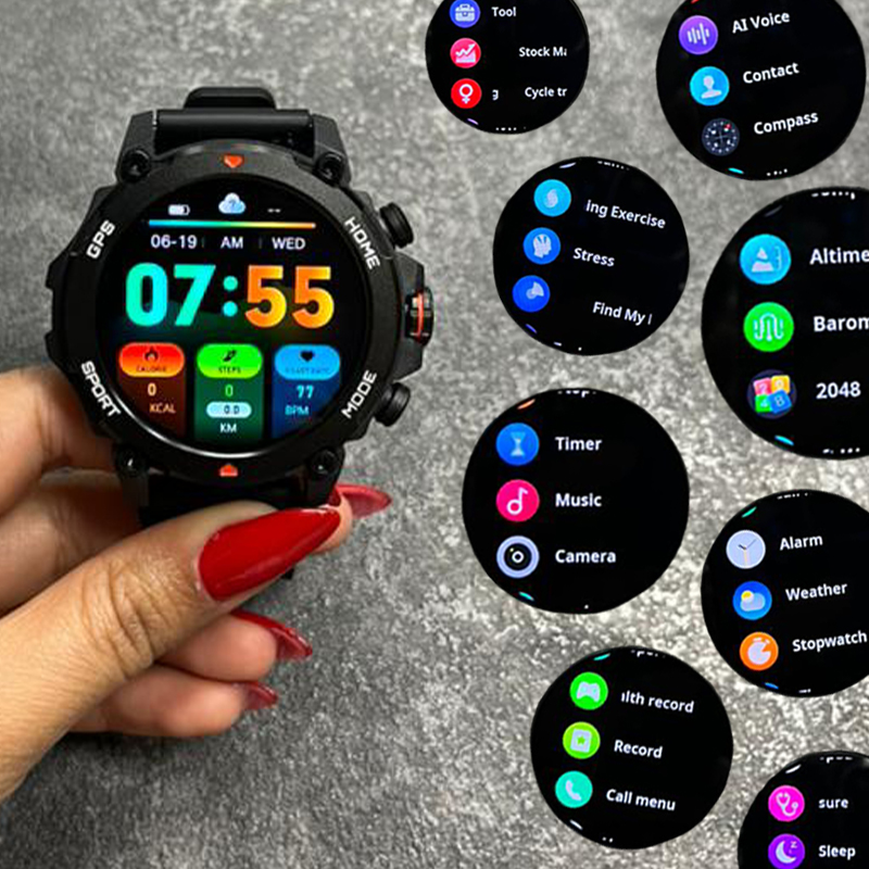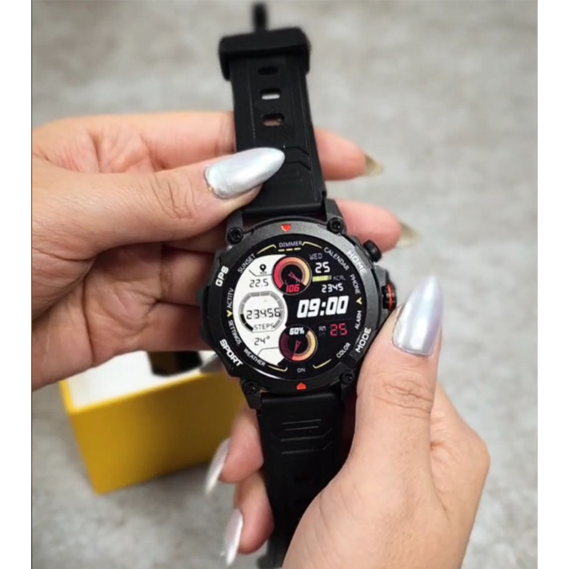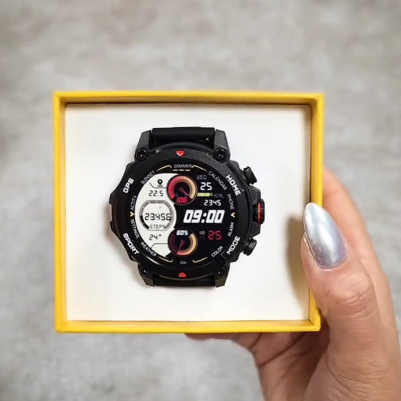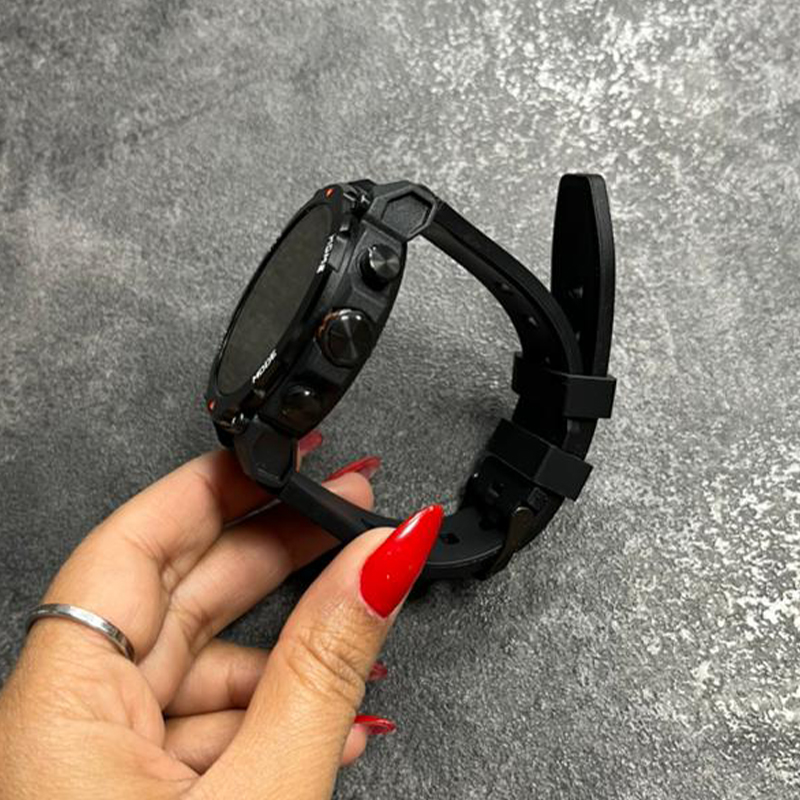 وقتی ساعت به برنامه متصل است، تلفن همراه پس از کلیک صدایی ایجاد میکند و ساعتتان تلفنتان را پیدا میکند. عملکرد ماشین حساب محاسبات را برای شما راحت تر و ساده تر میکند. زنگ هشدار و تایمر و دستیار صوتی و وضعیت آب و هوا از دیگر امکانات است. اپلیکیشن smart-time pro یک برنامه ضروری برای استفاده از ساعت هست. میتوانید ساعت خود را از طریق اپلیکیشن مدیریت کنید و از قابلیت های بیشتری که ساعت برای شما فراهم میکند، بهره مند شوید. تنظیم روشنایی و صفحه نمایش همیشه روشن و بلند کردن دست برای روشن کردن صفحه نمایش، مدت زمان روشن بودن صفحه نمایش برای شما قابل تنظیم میباشد. برای دانلود اپلیکیشن کد QR در دفترچه راهنما را اسکن کنید. بعد از نصب اپلیکیشن را باز کنید. روی دستگاه کلیک کنید و جستجو و اتصال را انجام دهید و مطمئن شوید که نام بلوتوث تلفن همراه با ساعت شما یکسان باشد. برای استفاده از گارانتی 6 ماهه شرکتی به مواردی که در دفترچه راهنما شامل گارانتی میشوند حتما دقت کنید.